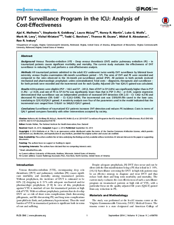 (PDF) DVT Surveillance Program in the ICU: Analysis of Cost-Effectiveness