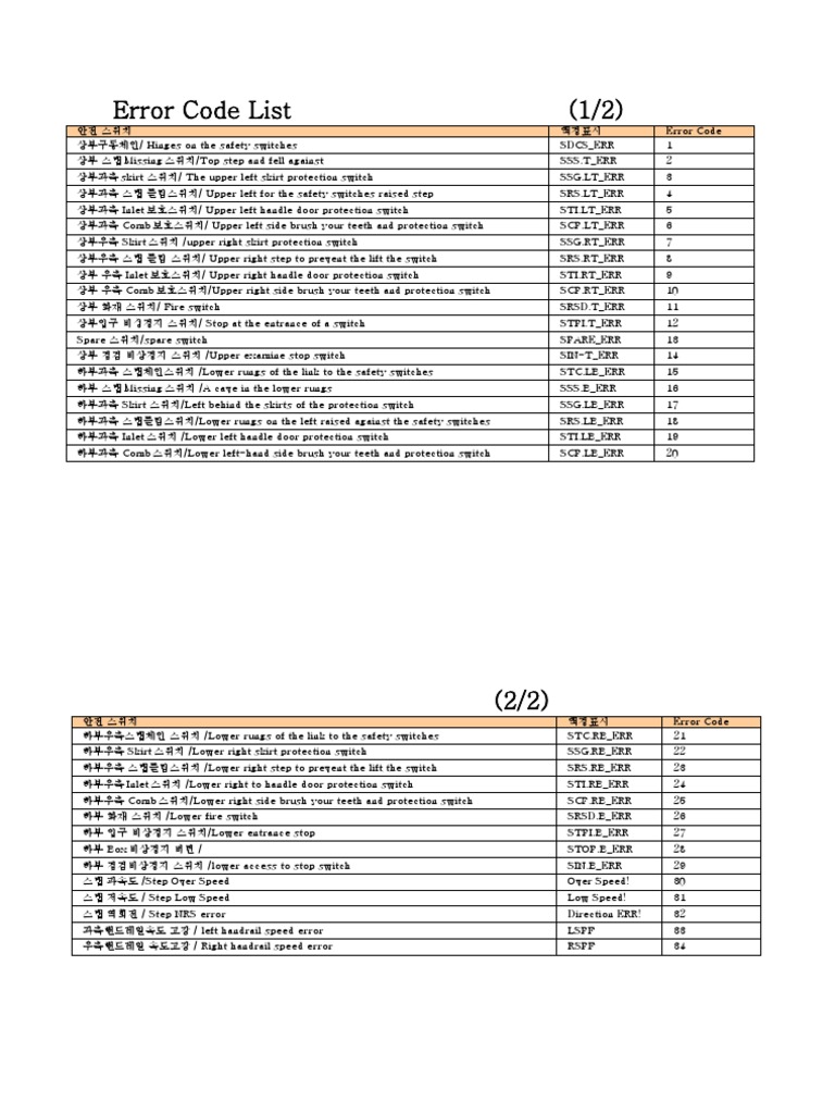 DTX Error - Code - List (V8.1) | PDF