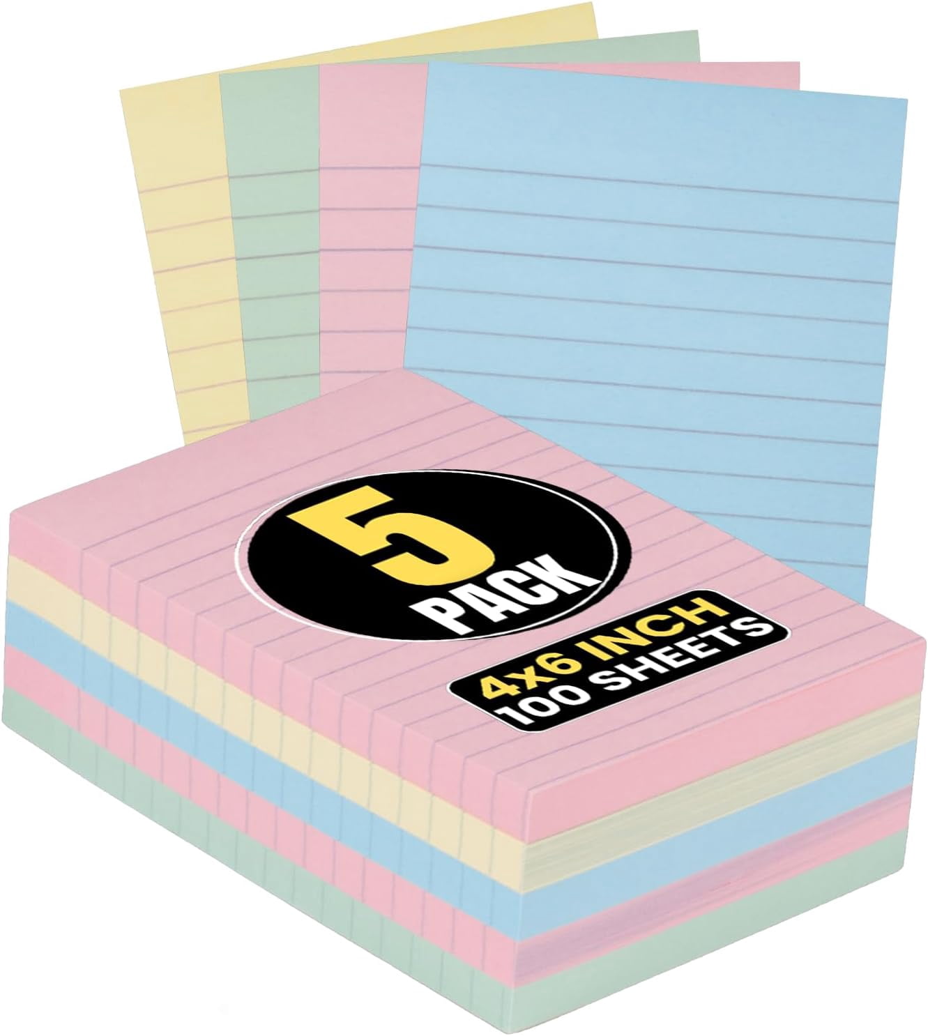 BDKWID-Lined Sticky Notes 4x6, Sticky Note Pads Assorted Pastel Color ...