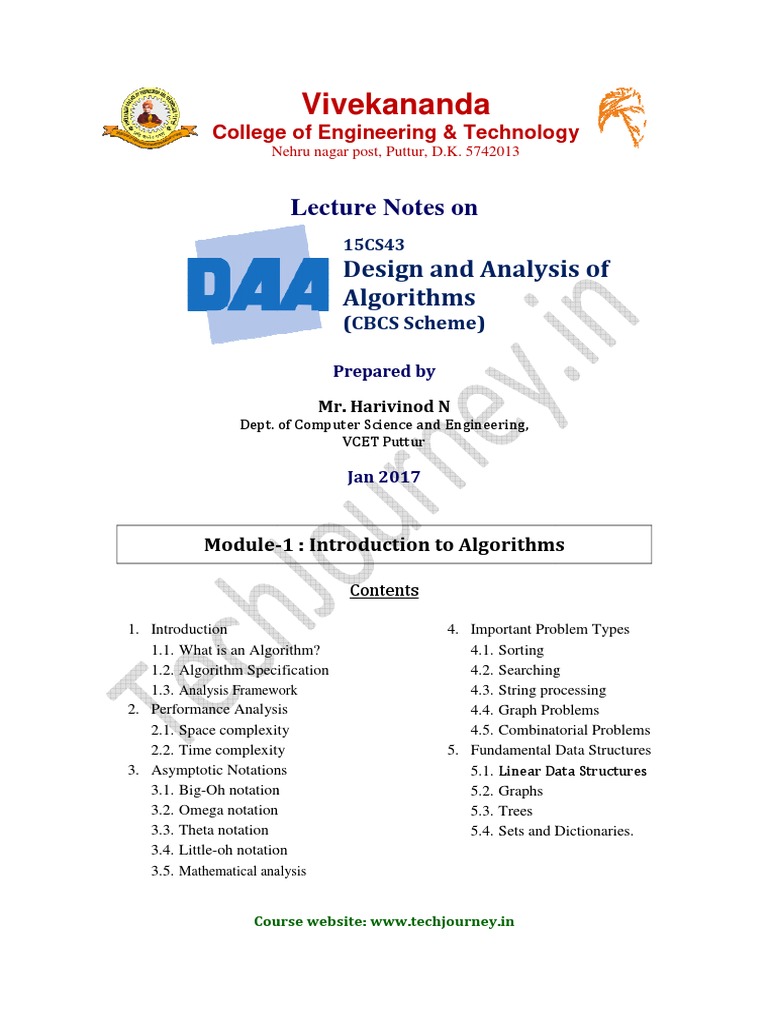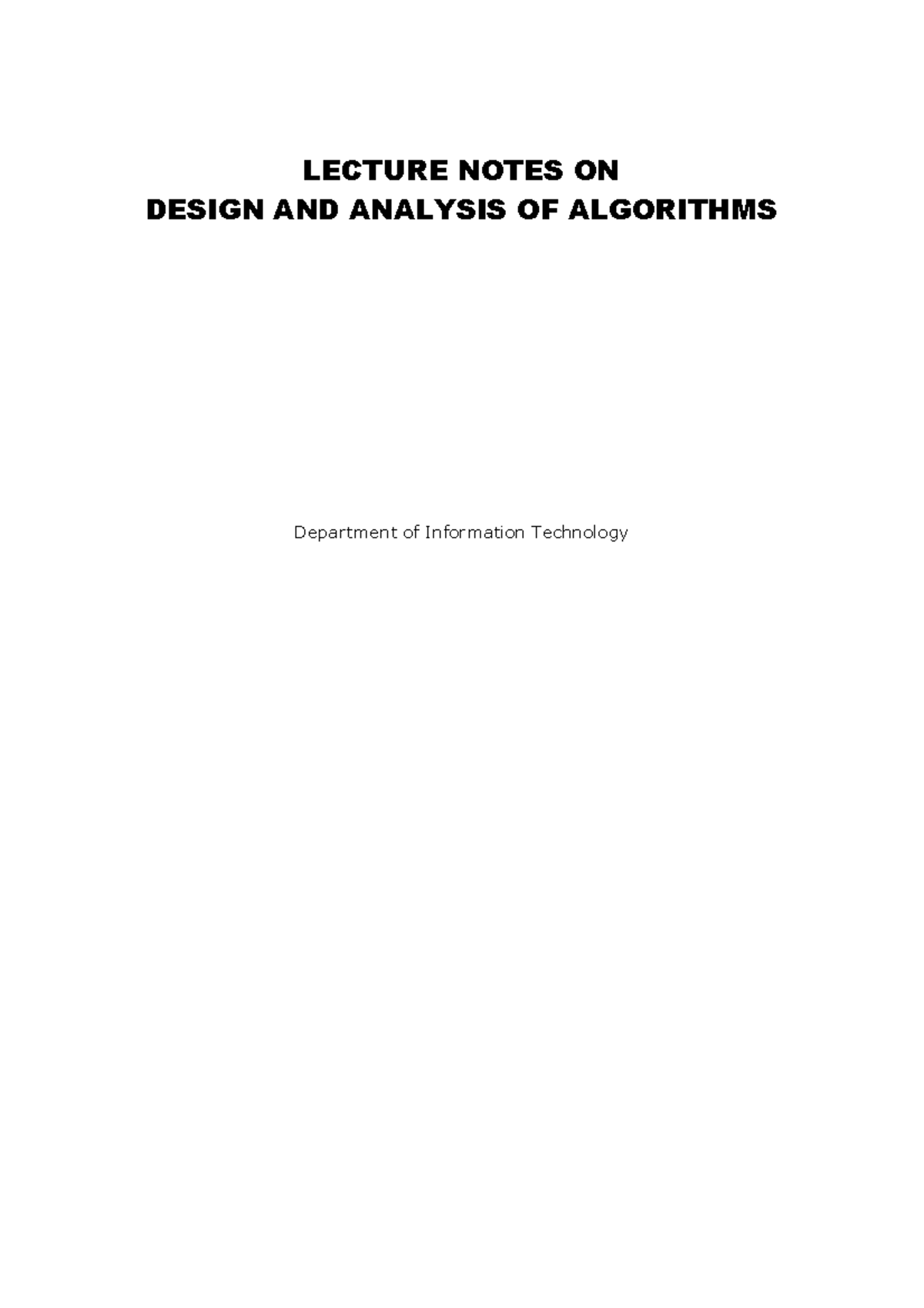 DAA-Notes: Lecture Notes on Design & Analysis of Algorithms - Studocu