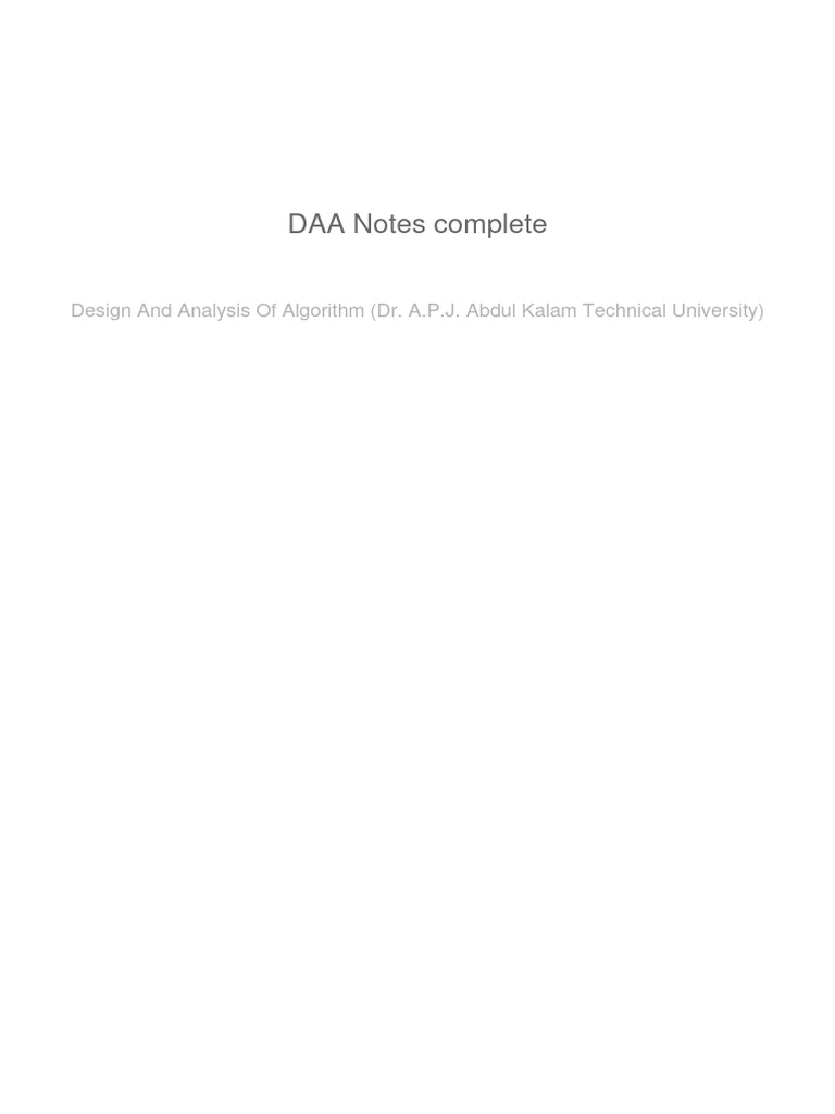 DAA - Lecture notes All - Design and Analysis of Algorithms - Studocu