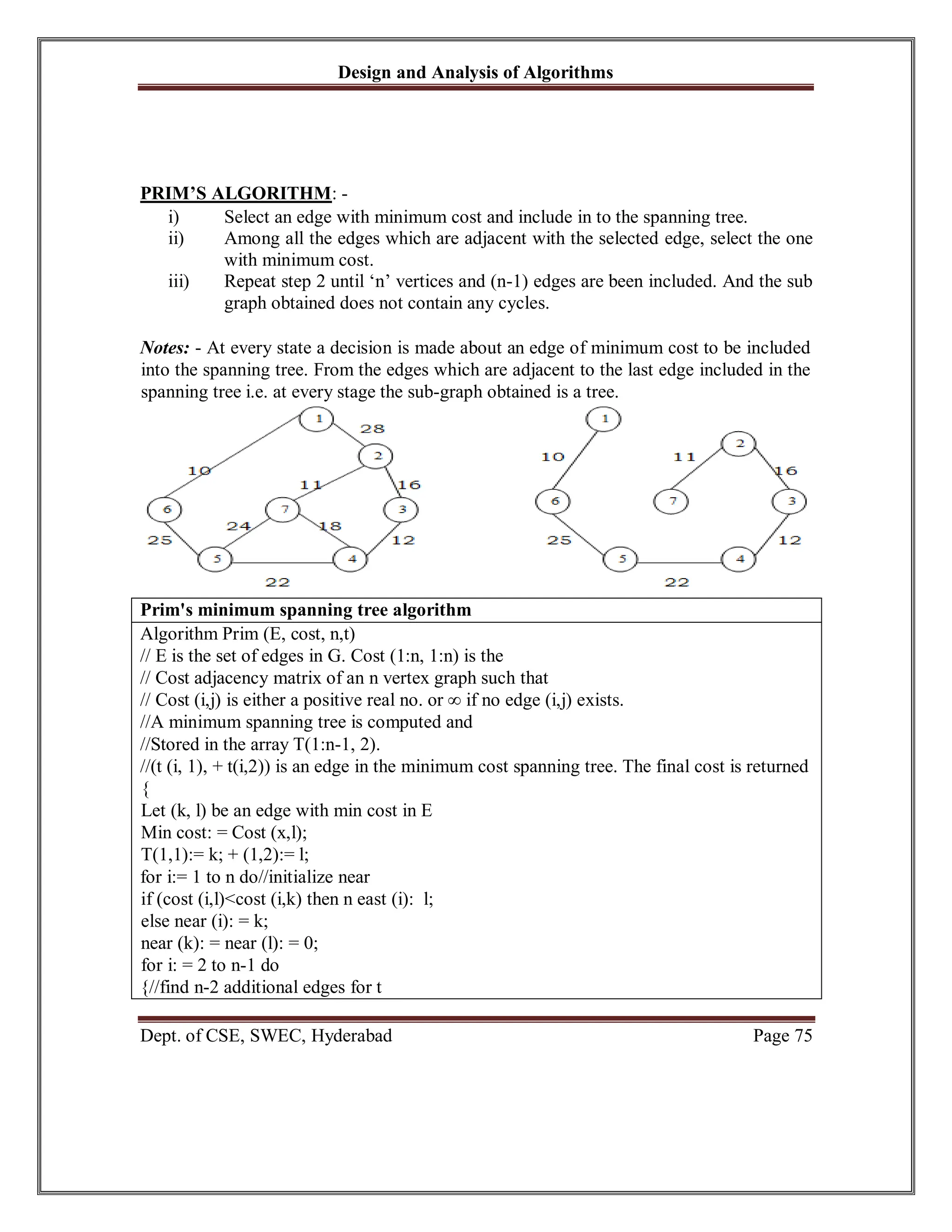 AoA Module 3 Note 5 Prims Algorithm MCST | PDF | Mathematical Relations ...