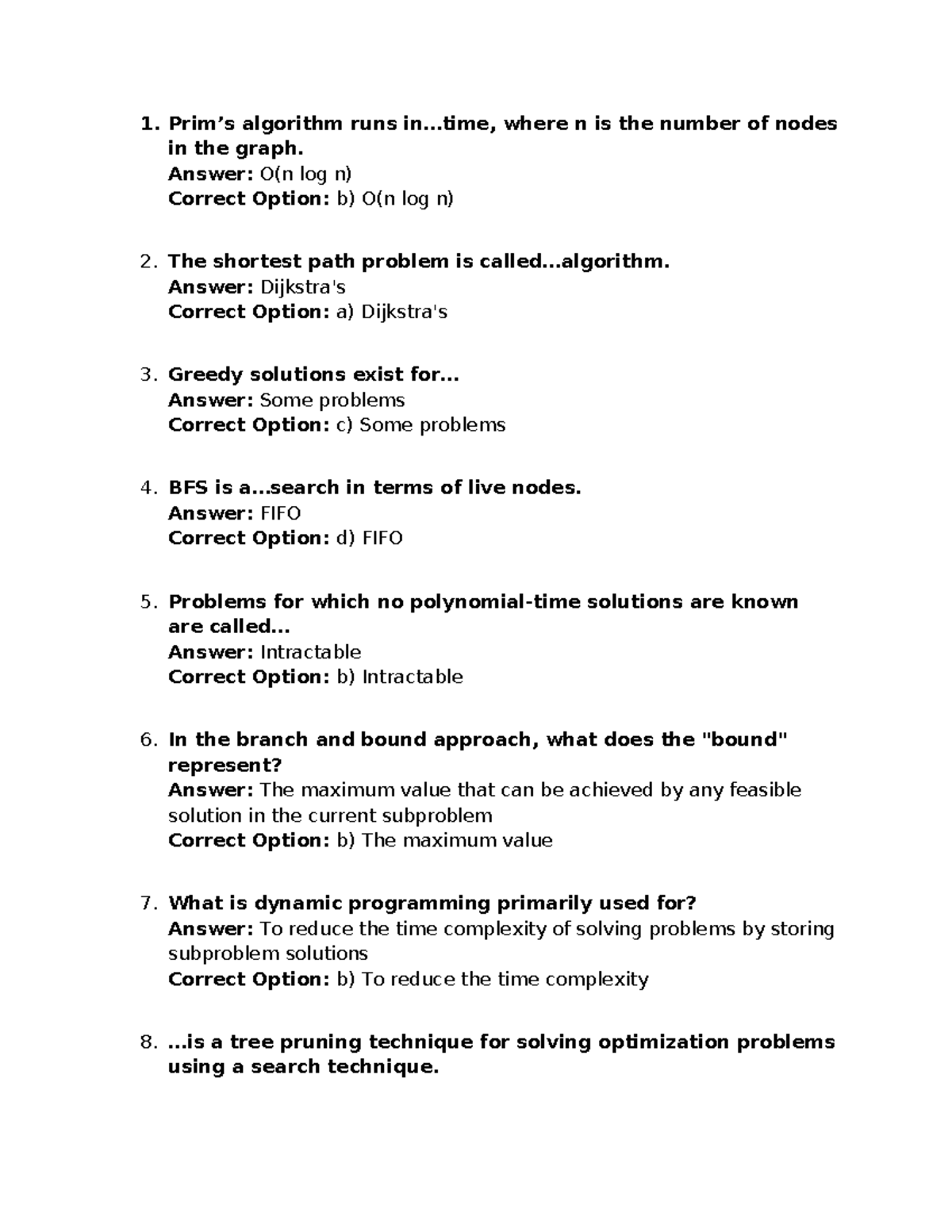 DAA MID 2 BITS - bits - Prim’s algorithm runs in.., where n is the ...