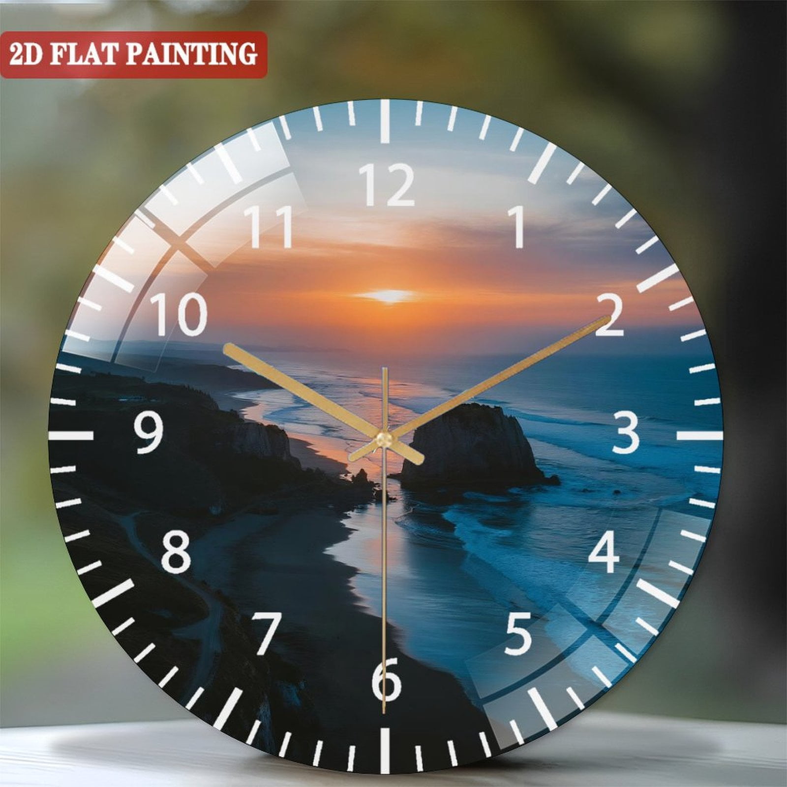 Toughened Glass Wall Clock with Modern Coastal Silent Movement, Battery ...