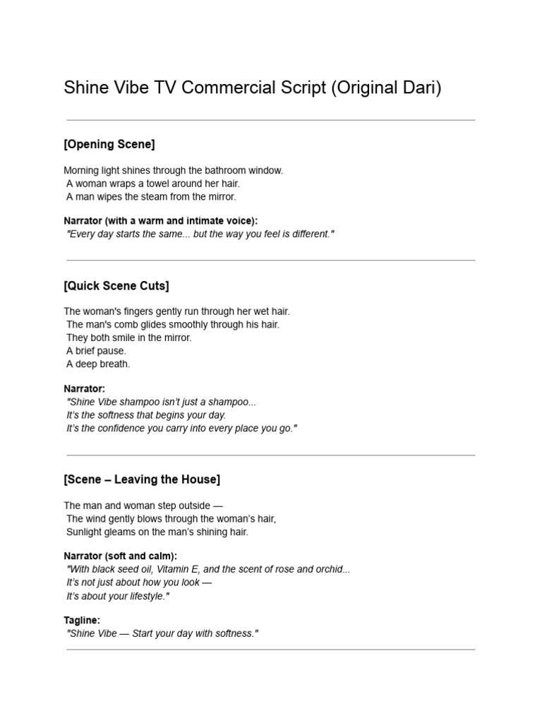 Shine Vibe TV Commercial Script (Original Dari) | PDF