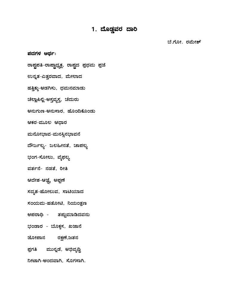 Lesson - 1. Doddavara Daari | PDF