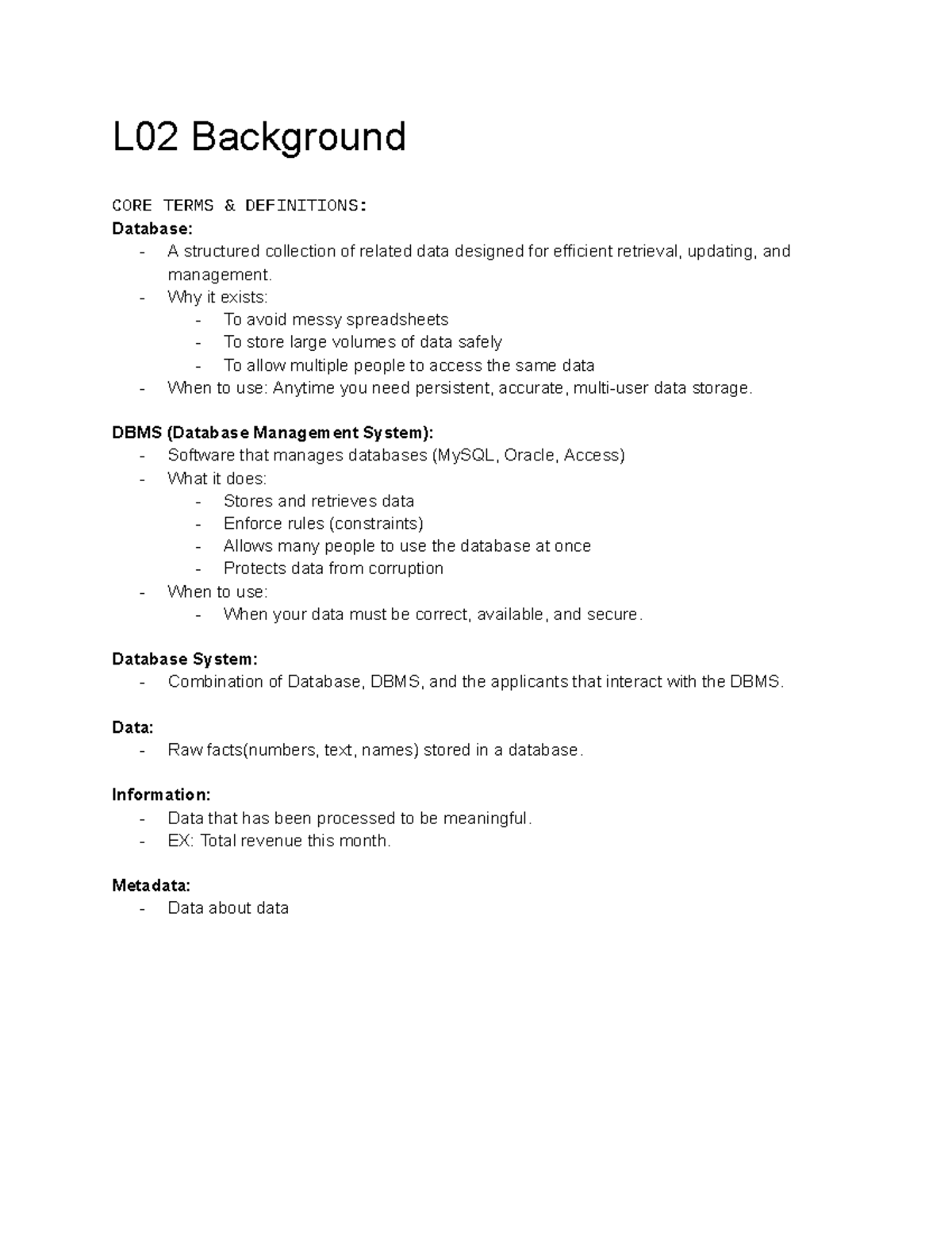 L02 Database Concepts and DBMS Overview - Studocu