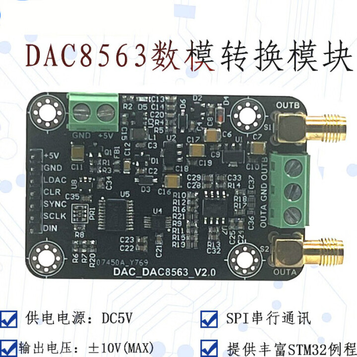 DAC8563数模转换器数据采集模块高精度双路16位DAC ±10V可调输出_虎窝淘
