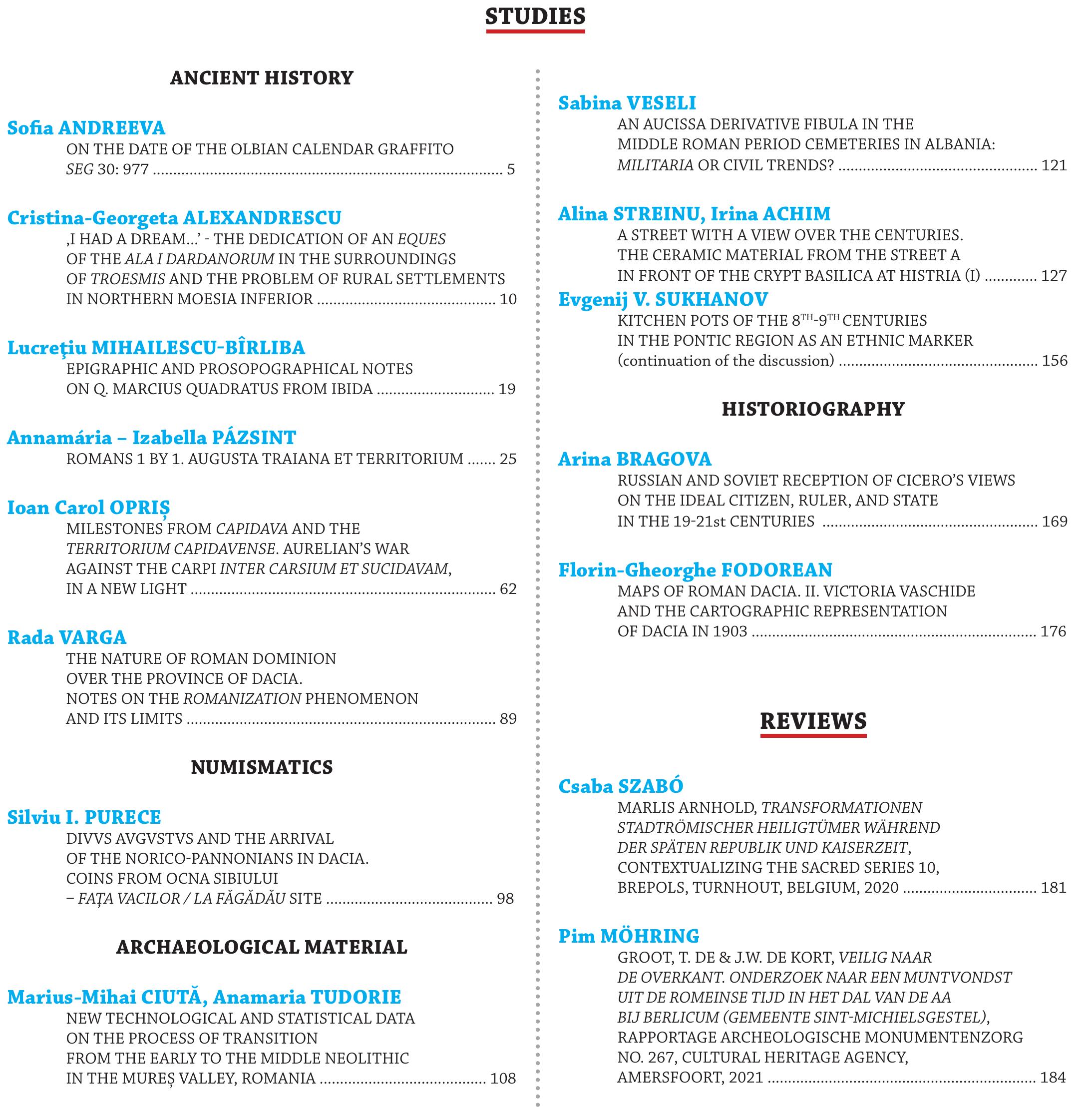 Table 1 - Maps of Roman Dacia. II. Victoria Vaschide and the