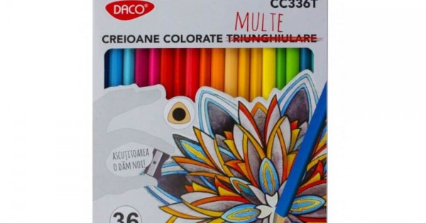 Set 36 Creioane Color DACO, 36 Culori, Corp Triunghiular din Lemn, cu ...