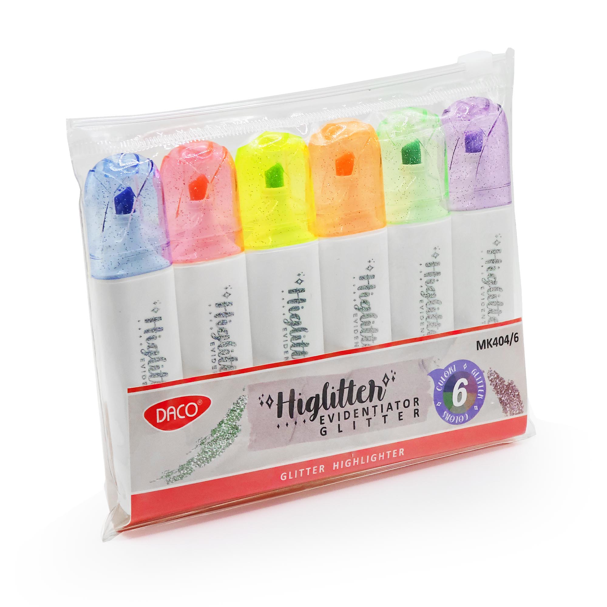 Textmarker cu sclipici DACO MK404, 6 buc/set | Office Direct