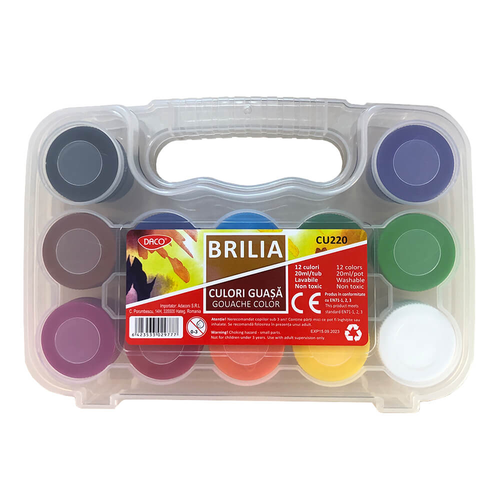 Culori Guasa pentru pictura, DACO Brilia, 12 culori/set - EvaWoodToys.ro