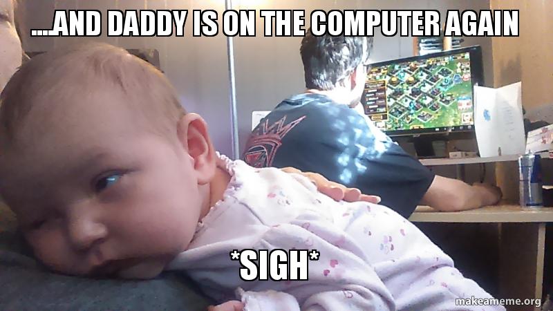 and daddy is on the computer AGAIN *Sigh* Meme Generator
