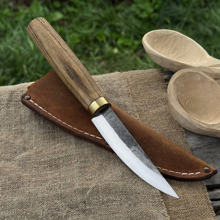 Sloyd Knife with Leather Sheath, 8 cm (3.15 inches) - Sharky Forged ...