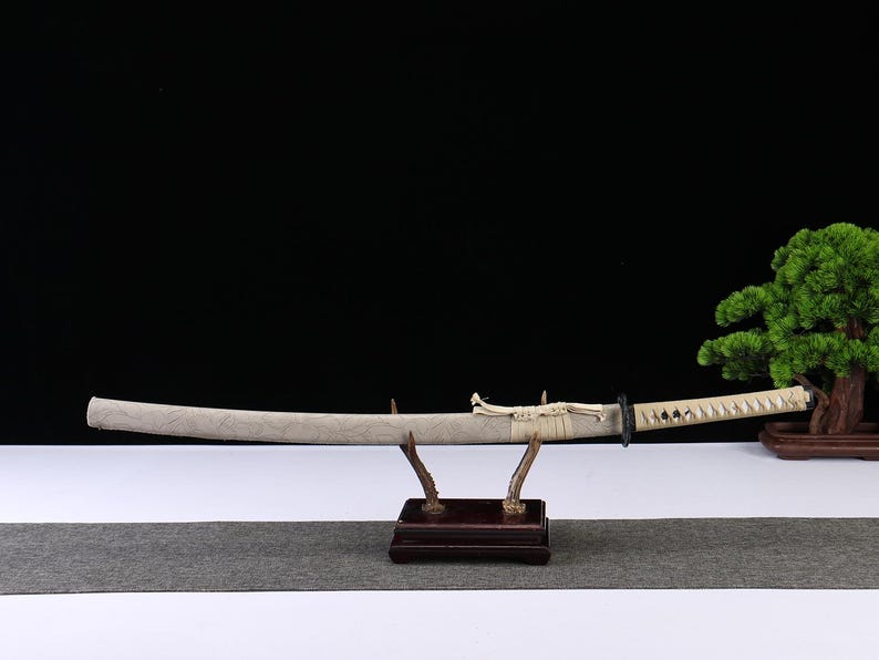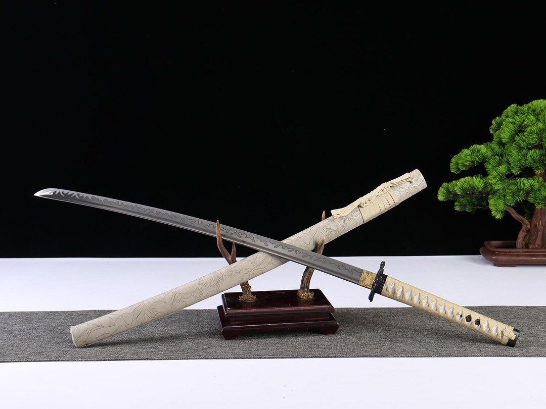 Hand-forged 1065 Steel Katana: Etched Orchid Scabbard & Unique Dragon ...