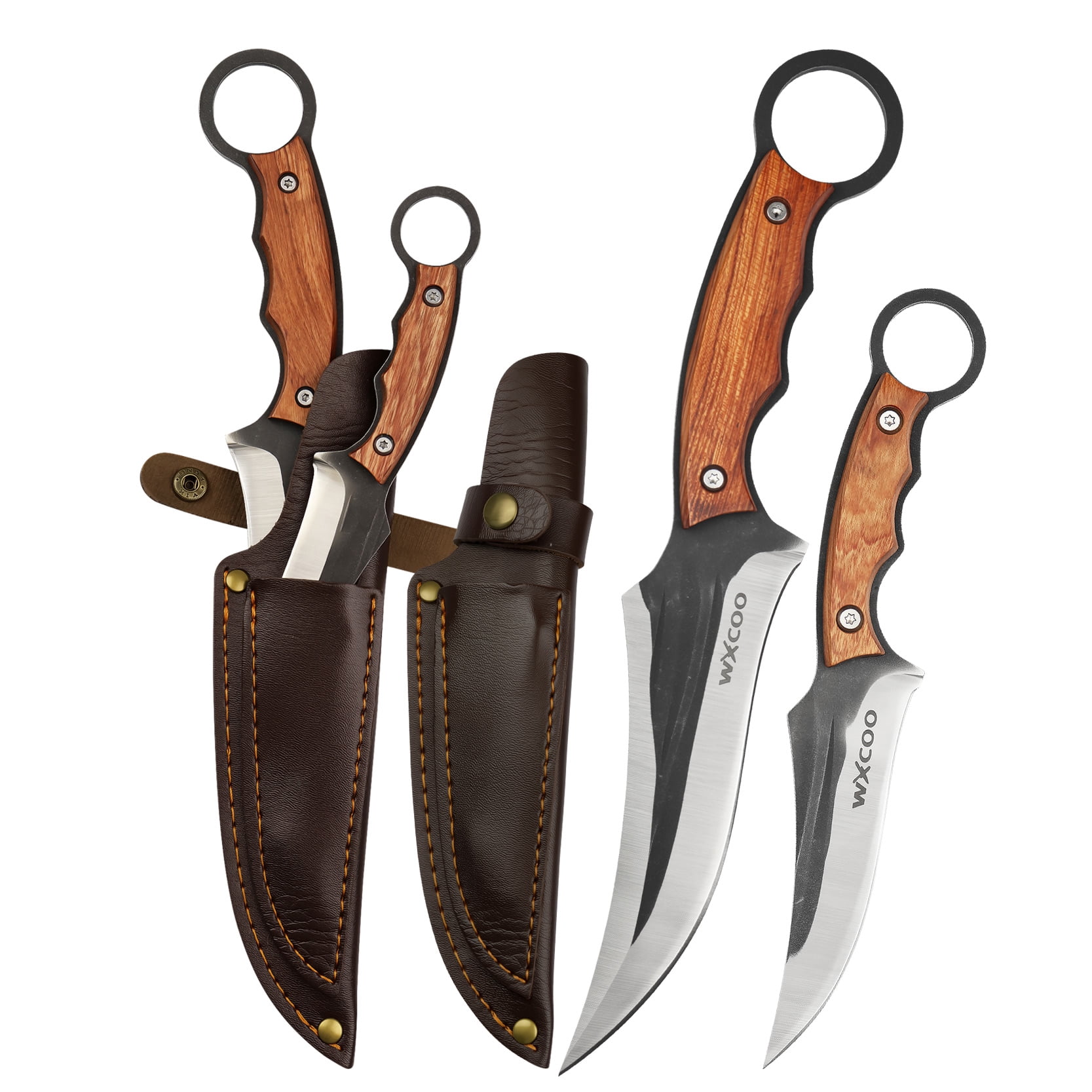 2-Piece Forged Fixed Blade Knives, Wood & Metal Composite Handle Ring ...
