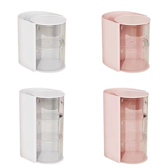 2-Tier Desk Storage Box with Stand, Rotatable Makeup Brush and Jewelry ...