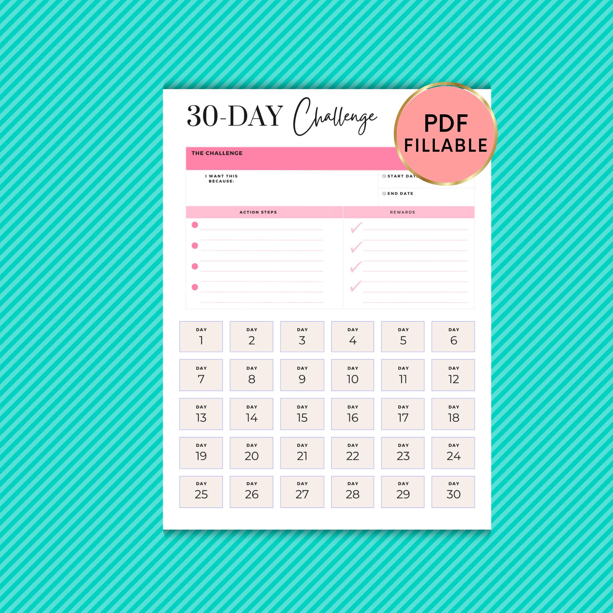 30-Day Challenge Printable Template | Goal and Habit Tracker PDF ...
