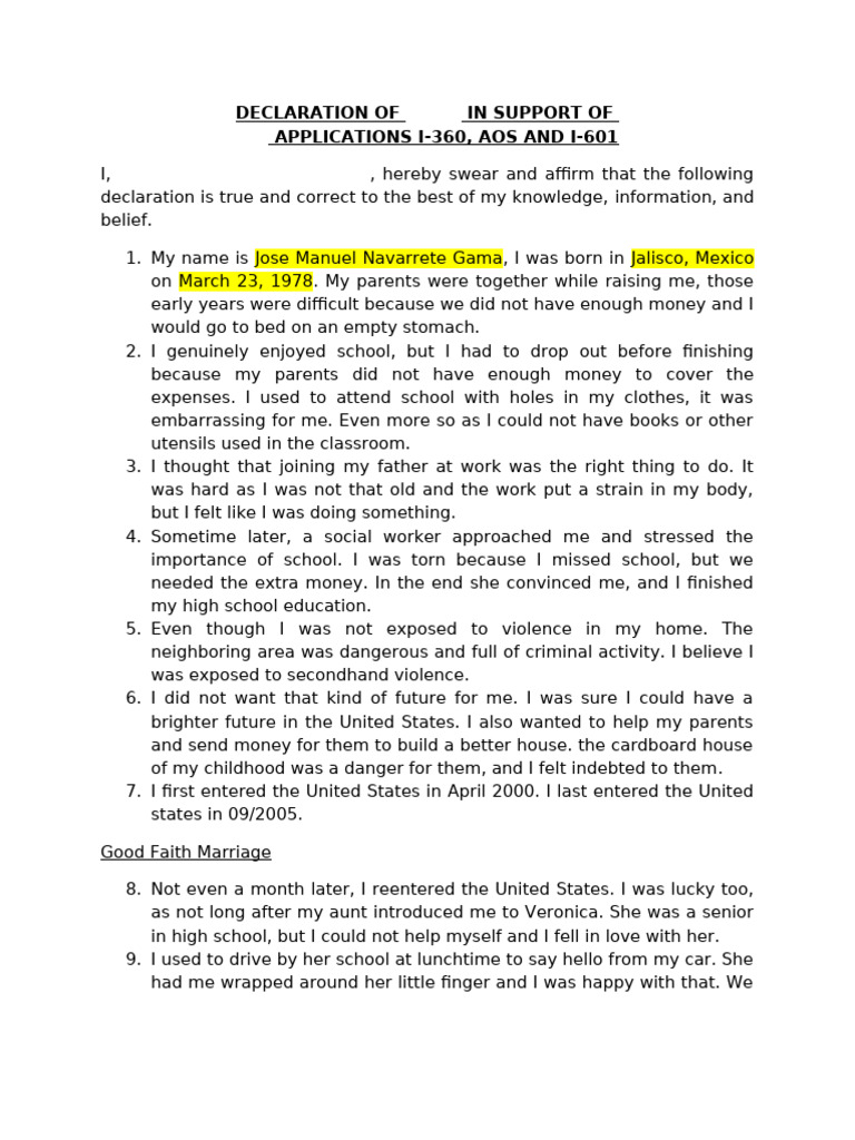 Personal Declaration Examples at Joan Bowler blog
