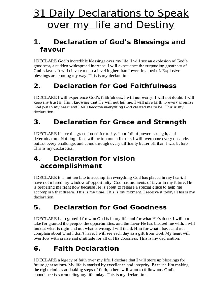 31 Daily Declarations To Speak Over My Life and Destiny | PDF