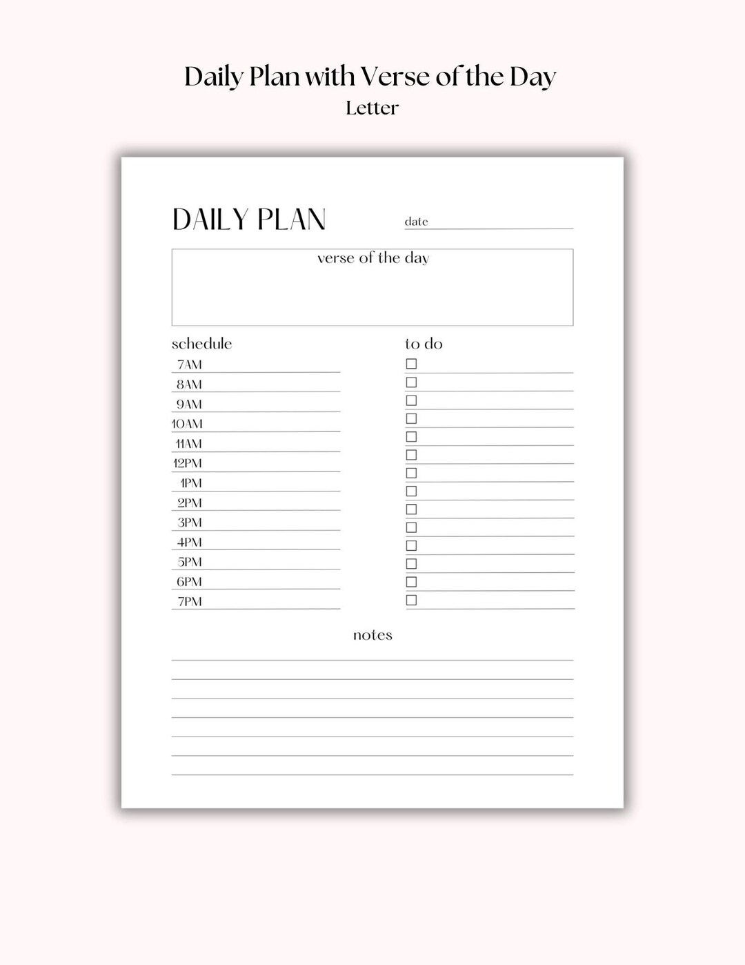 Daily Plan Printable, to Do List and Hourly Schedule With Verse of the ...