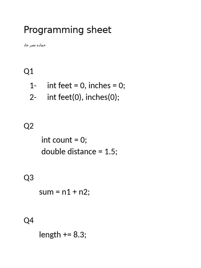 Programming Sheet | PDF