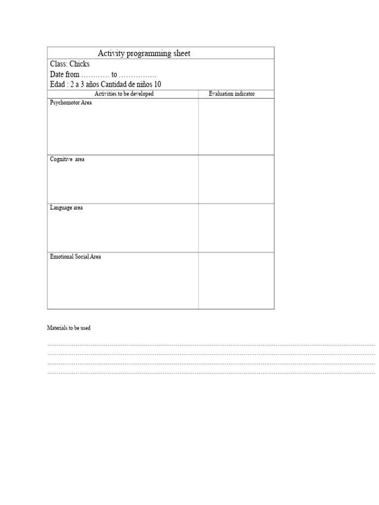 Baby & Toddler Activity Program Planning Sheet (Free Download ...