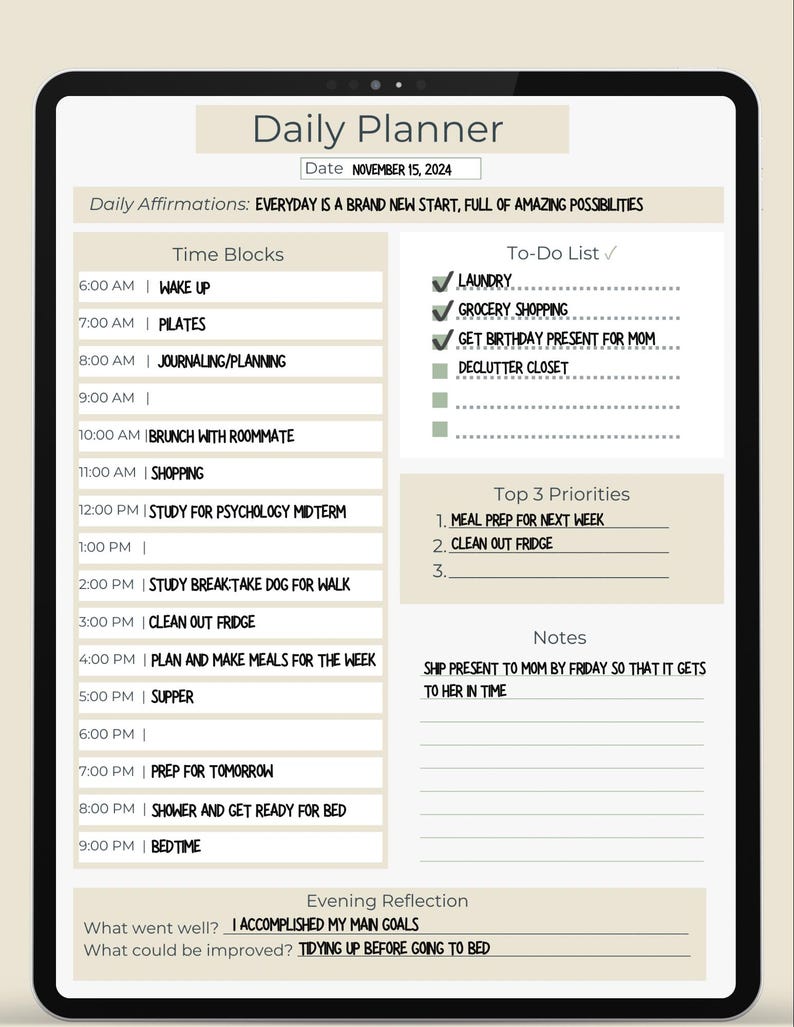Daily Digital Planner, Task Organizer, Daily Schedule Planner, Goal ...