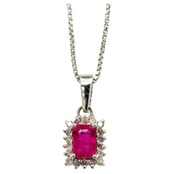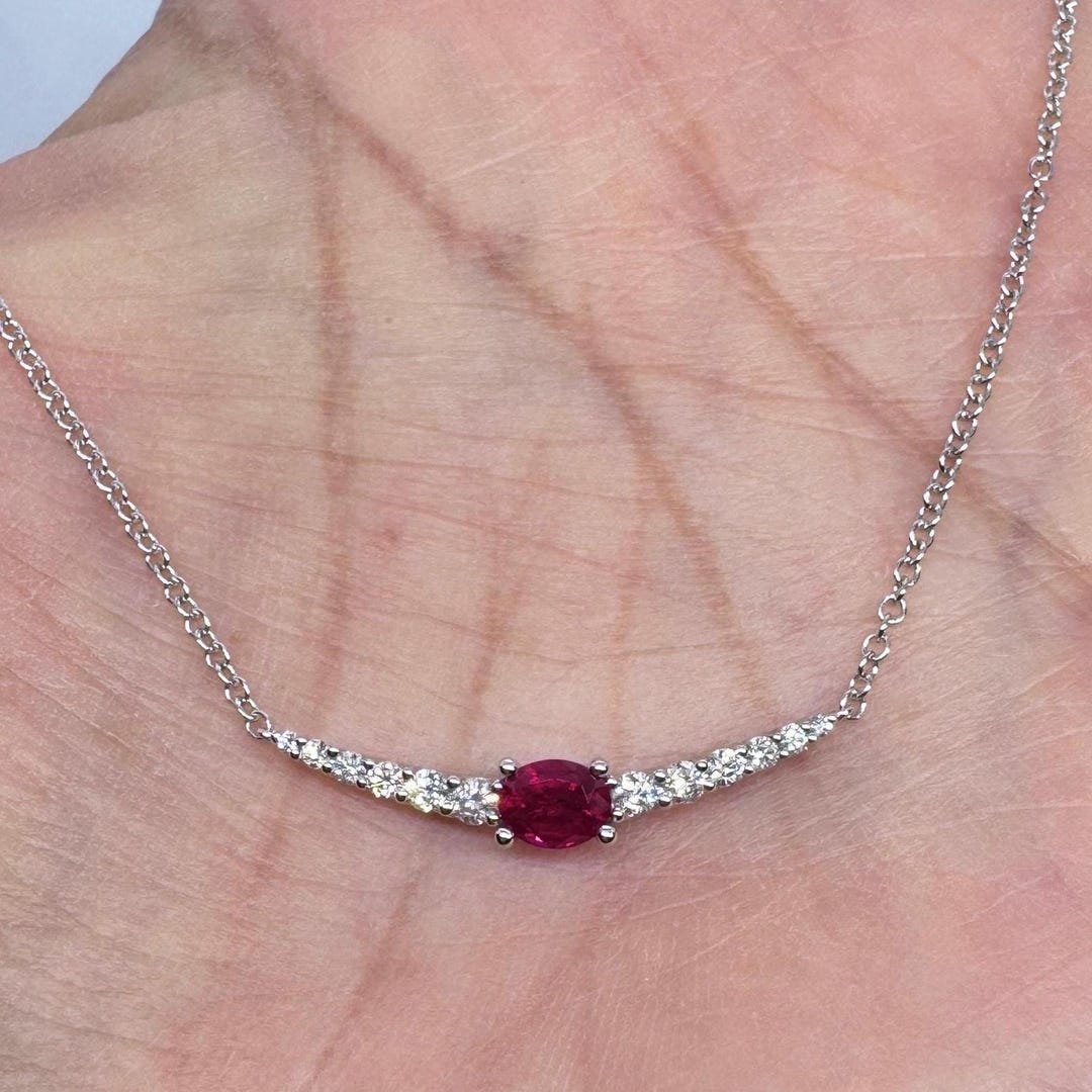 Dainty Ruby Diamond Pendant, 18K White Gold Dainty Ruby Necklace ...