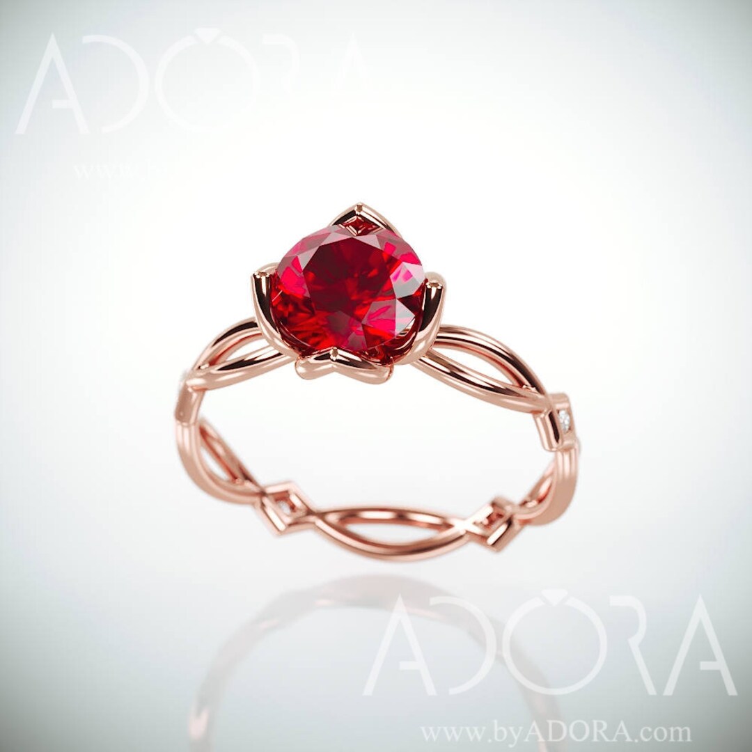 Handmade Delicate Ruby Engagement Ring | Rose Gold Engagement Ring Set ...