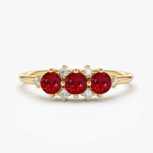 Dainty Cherry Red Ruby Ring in 14K Gold With Diamond Trio Accents ...