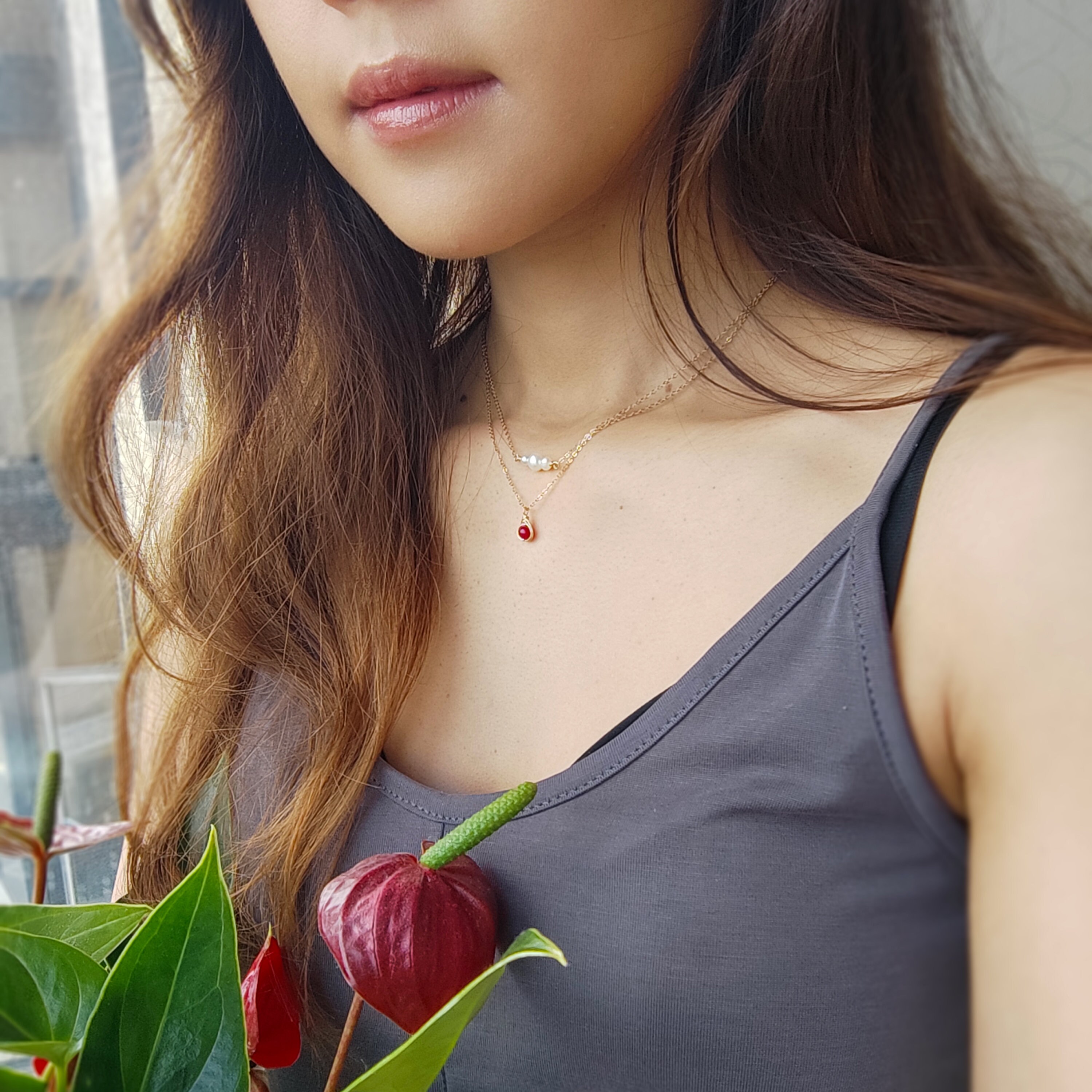 Dainty Ruby Necklace, Gold Ruby Layer Necklace, Ruby Pendant, Ruby ...