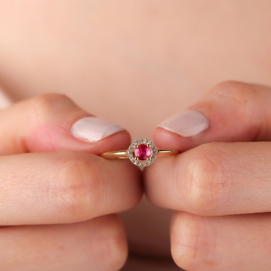 Customizable Modern Dainty Ruby Diamond Ring Gift for Girlfriend in 14k ...