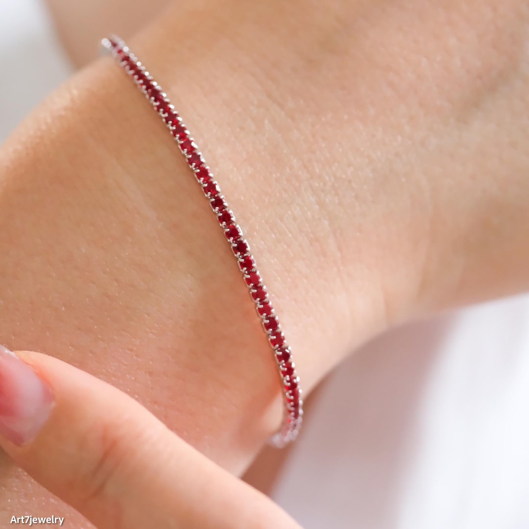 Dainty Ruby Tennis Bracelet, Minimalist Ruby Bracelet, Silver Red ...