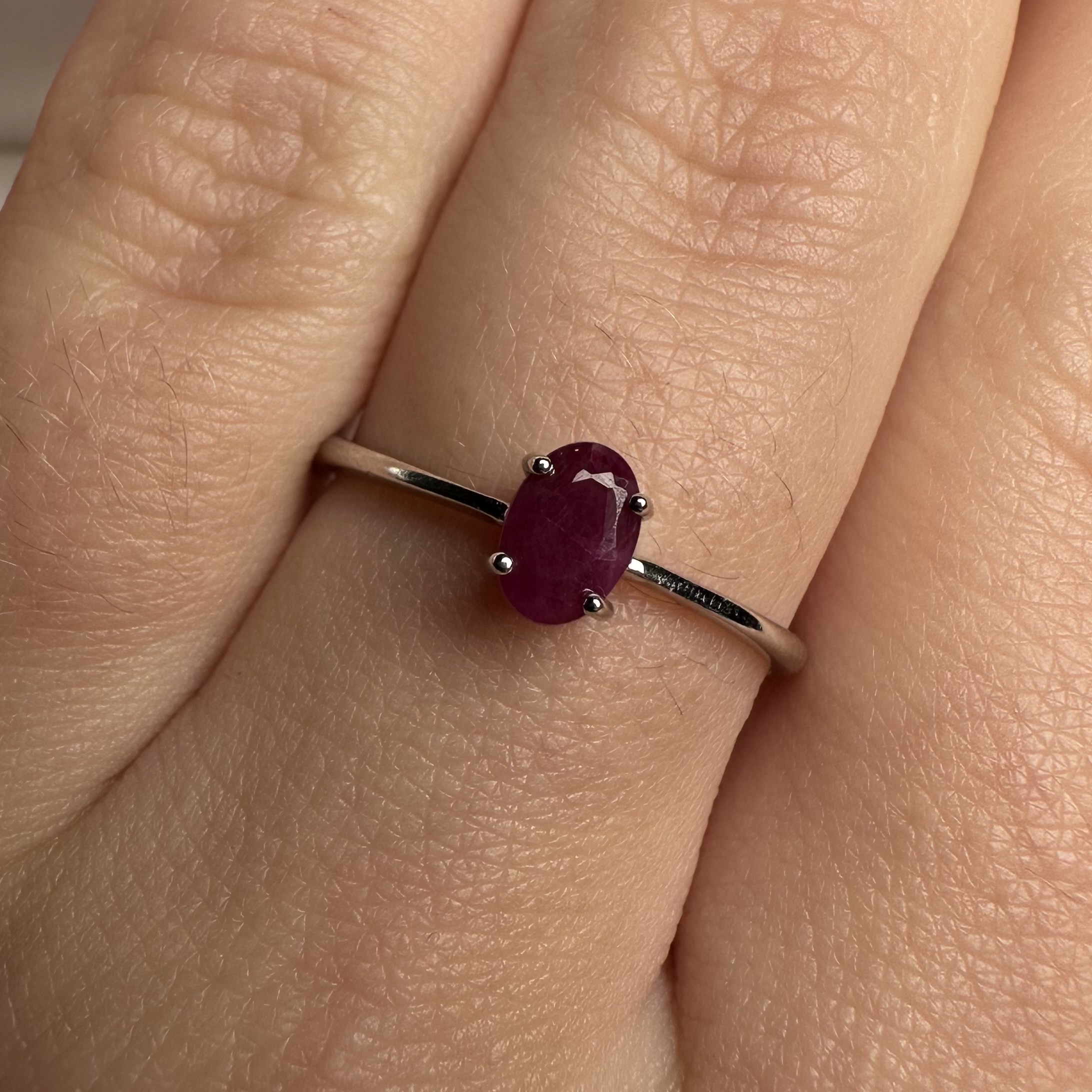 Dainty Ruby Ring, Facetted Horizontal Oval Stacking Ring, 925 Silver ...