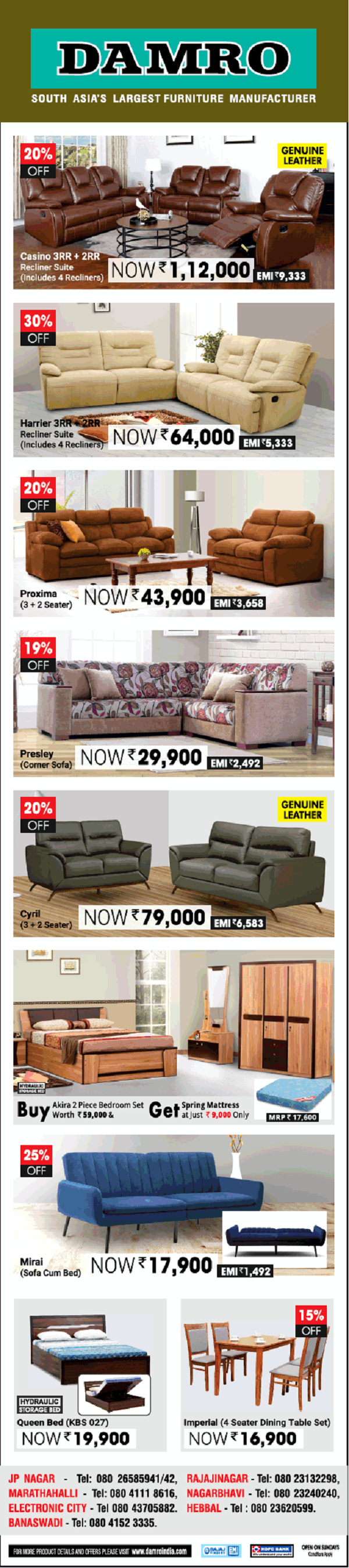 Damro Bengaluru Furniture Sales Stores Discounts Offers Showrooms 2020