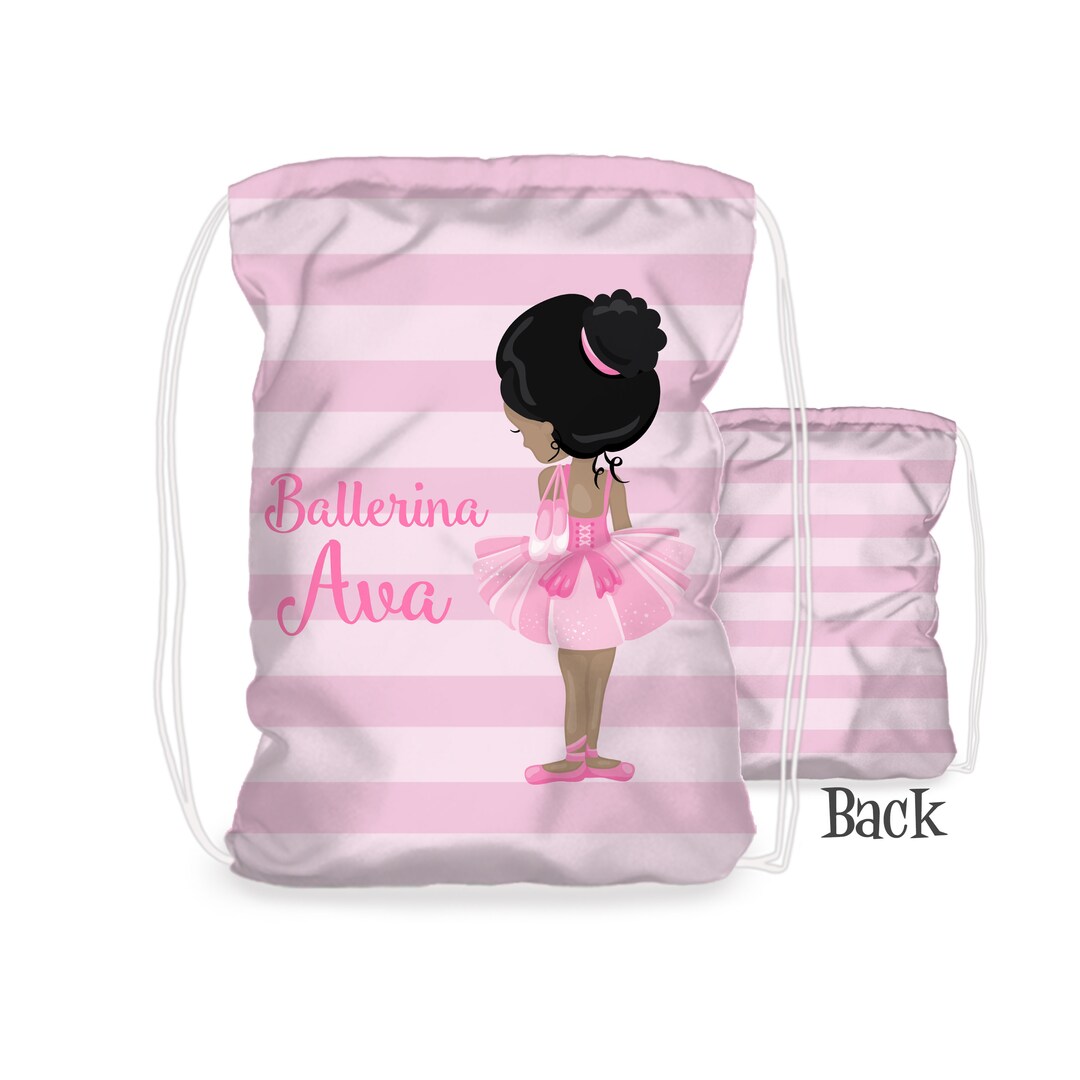 Personalized Ballerina Drawstring Backpack Pink Stripes Ballet Cinch ...