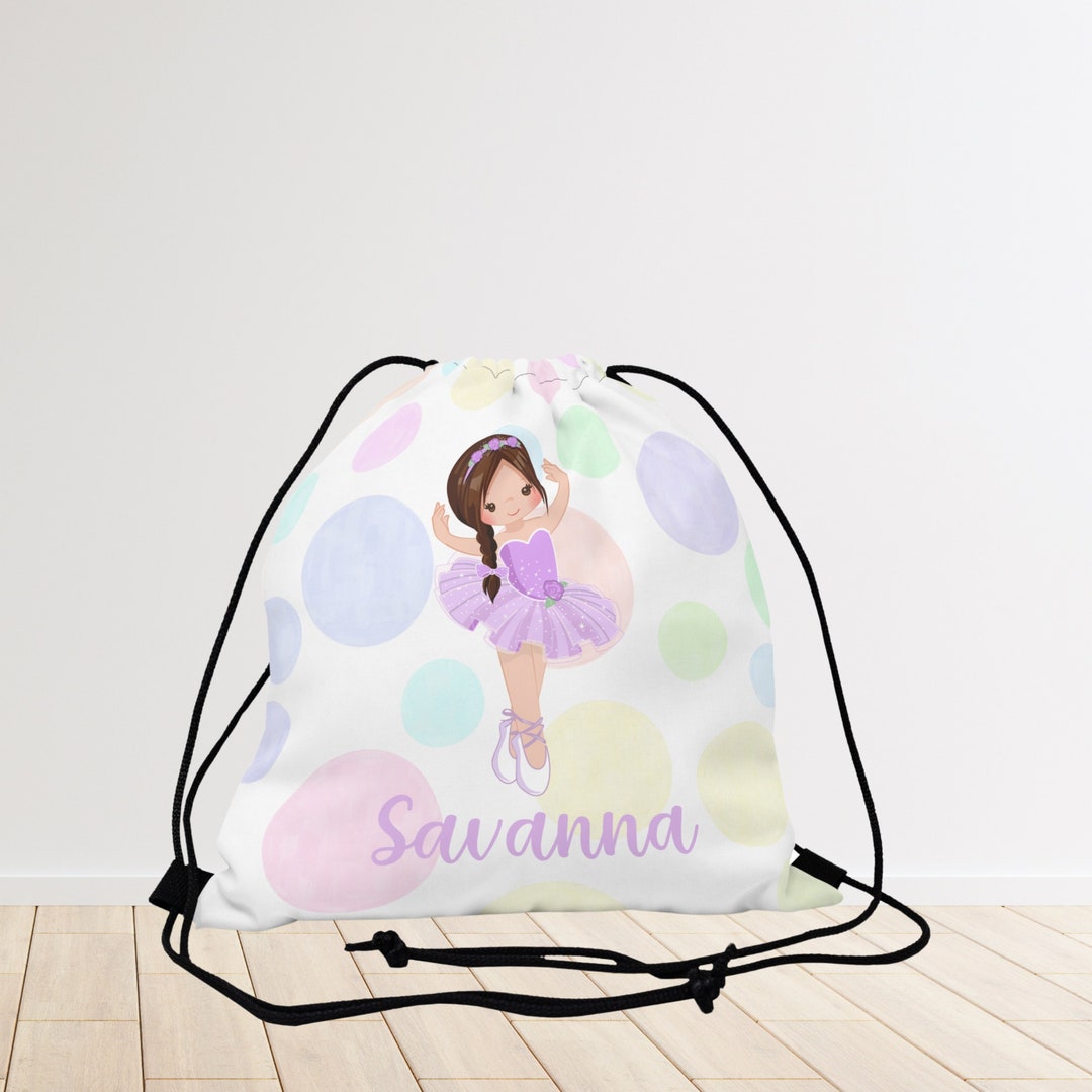 Personalized Ballet Drawstring Backpack - Purple Polka Dot Ballerina ...