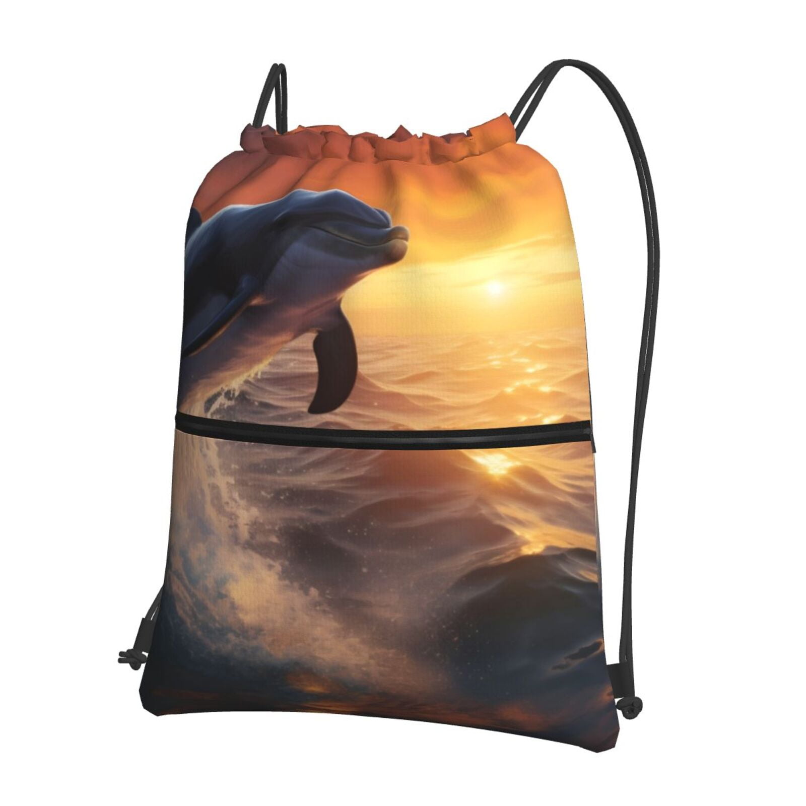 Coaee Sunset Dancing Dolphin for Drawstring zipper Backpack Sport Gym ...