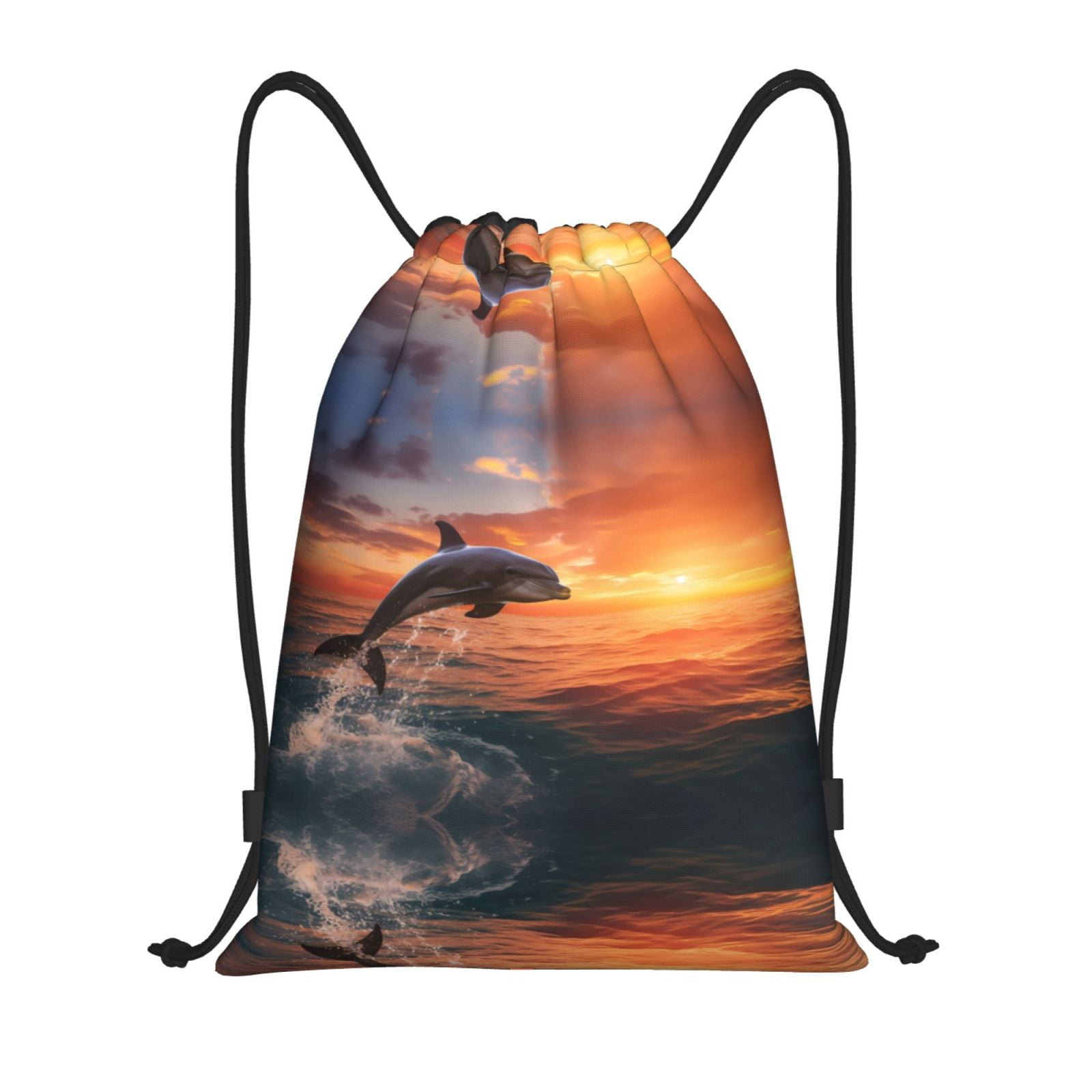 Drawstring Backpack, Sunset Dancing Dolphin B Light Waterproof Sports ...