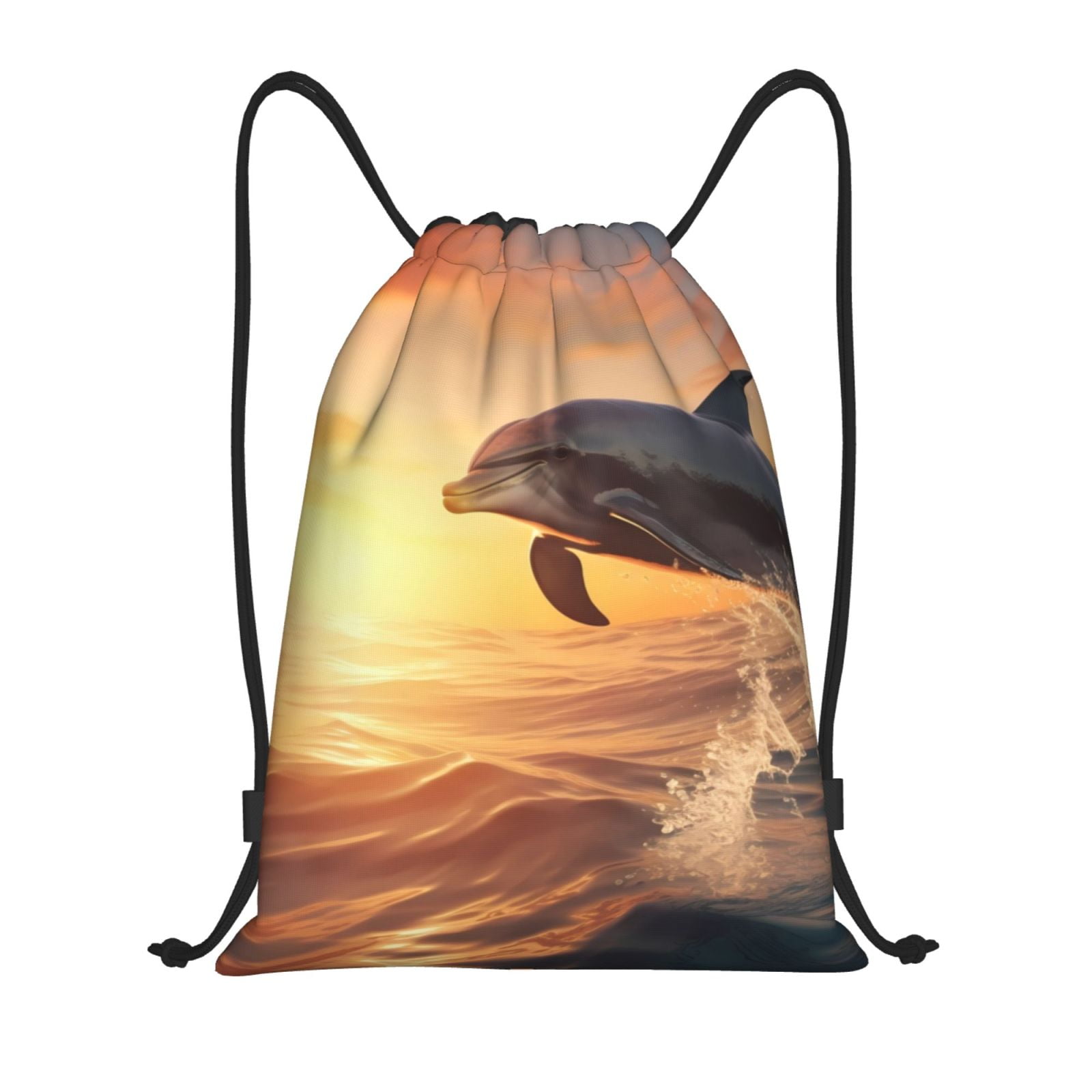 Fuzoiu Sunset Dancing Dolphin A Print Drawstring Backpack for Gym ...