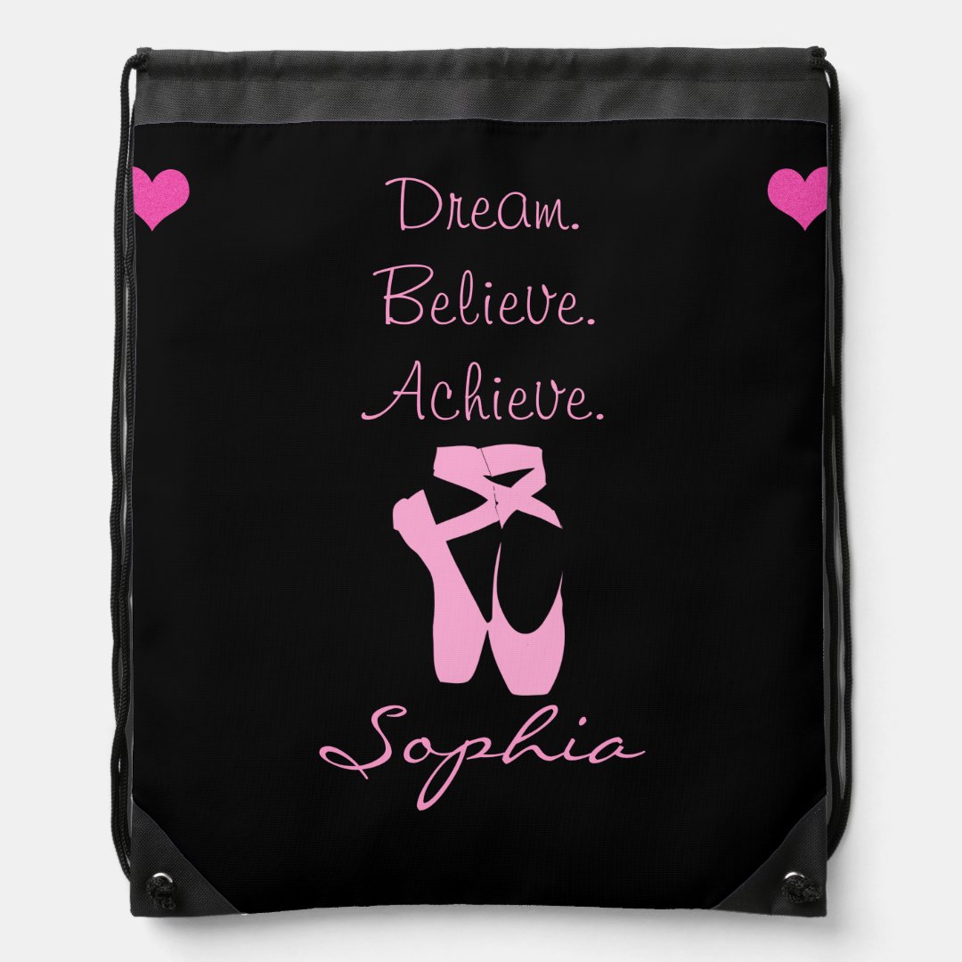 Dream. Believe. Achieve. Dance Drawstring Backpack | Zazzle