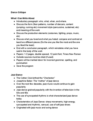 Dance Class- Dance Elements Analysis Written Assignment by Mrs Speer ...