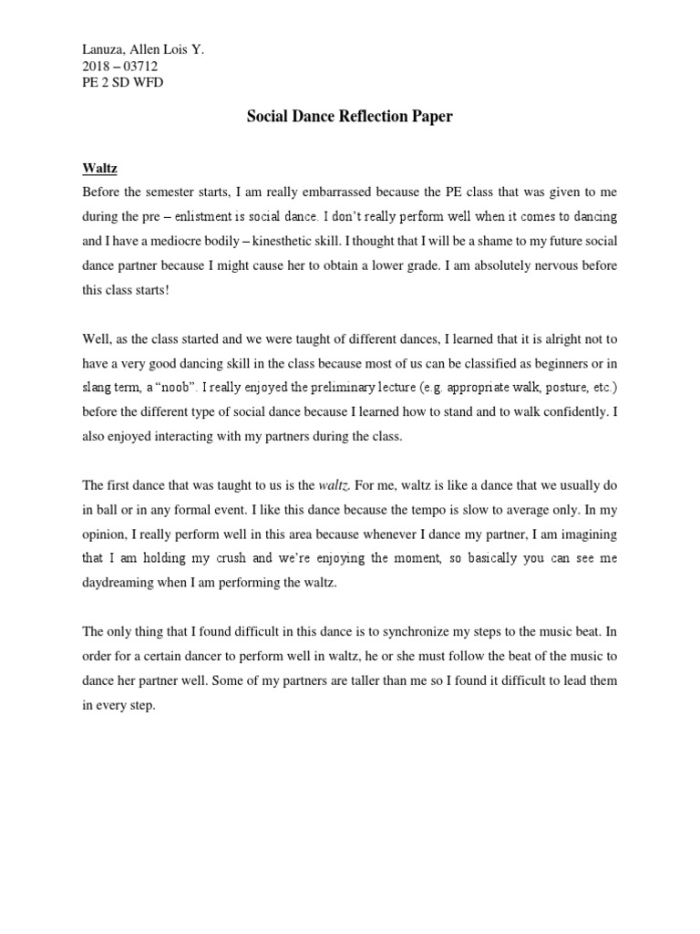Social Dance Reflection Paper | PDF | Tango | Dances