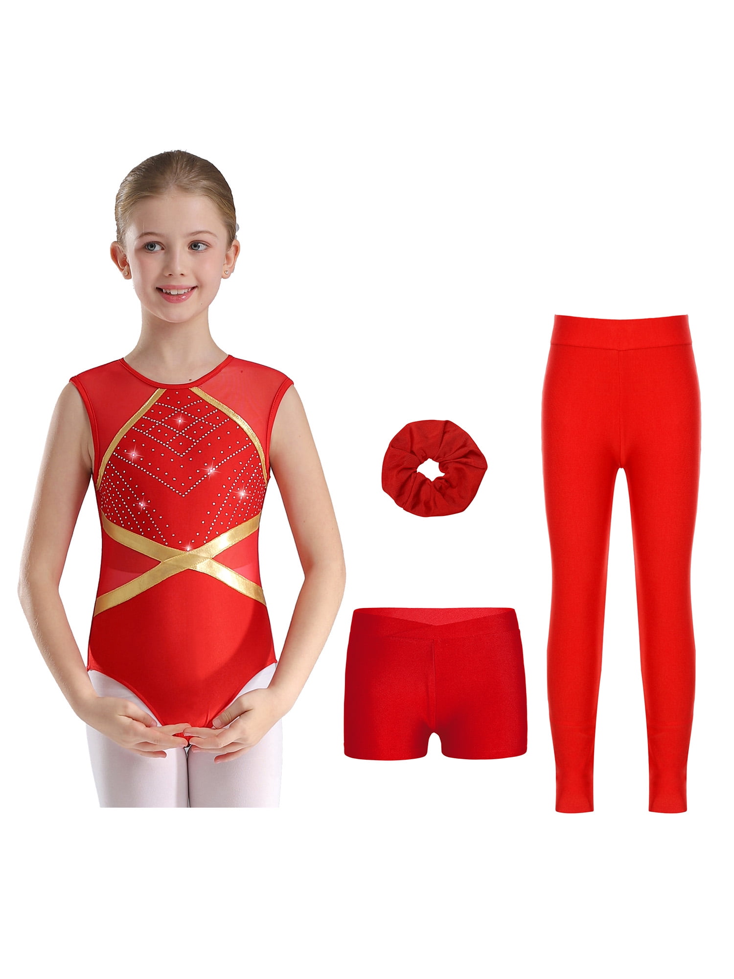 Aiihoo Gymnastics Leotard for Girls Figure Skating Jumpsuit 4Pcs Dance ...