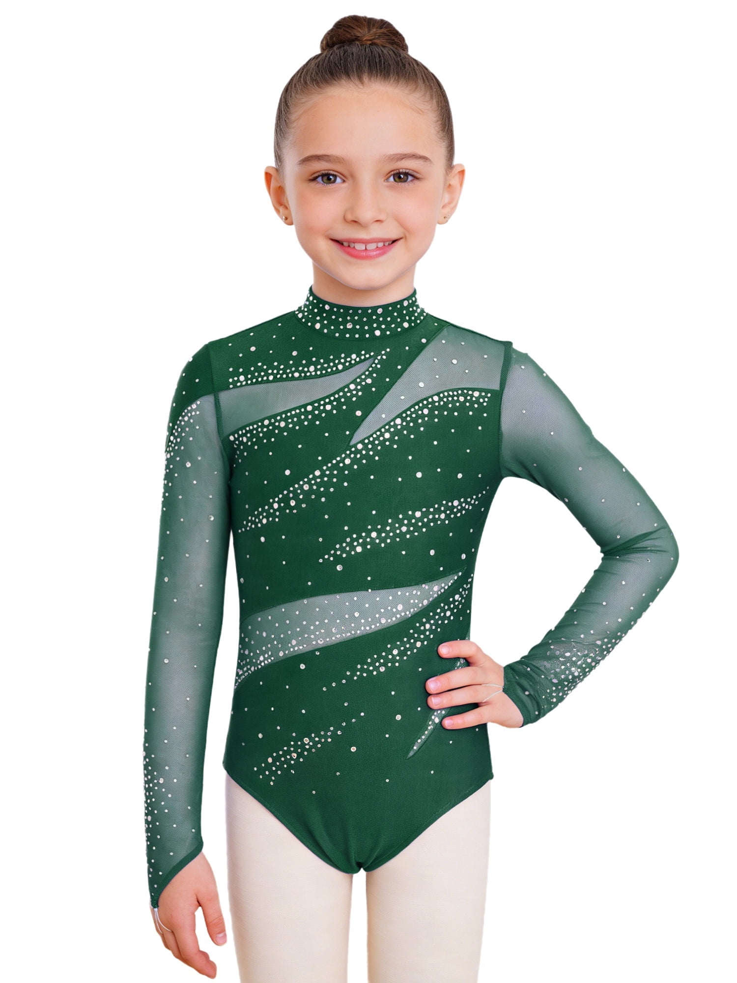 Choomomo Gymnastics Leotard for Girls Mesh Long Sleeve Ballet Dance ...