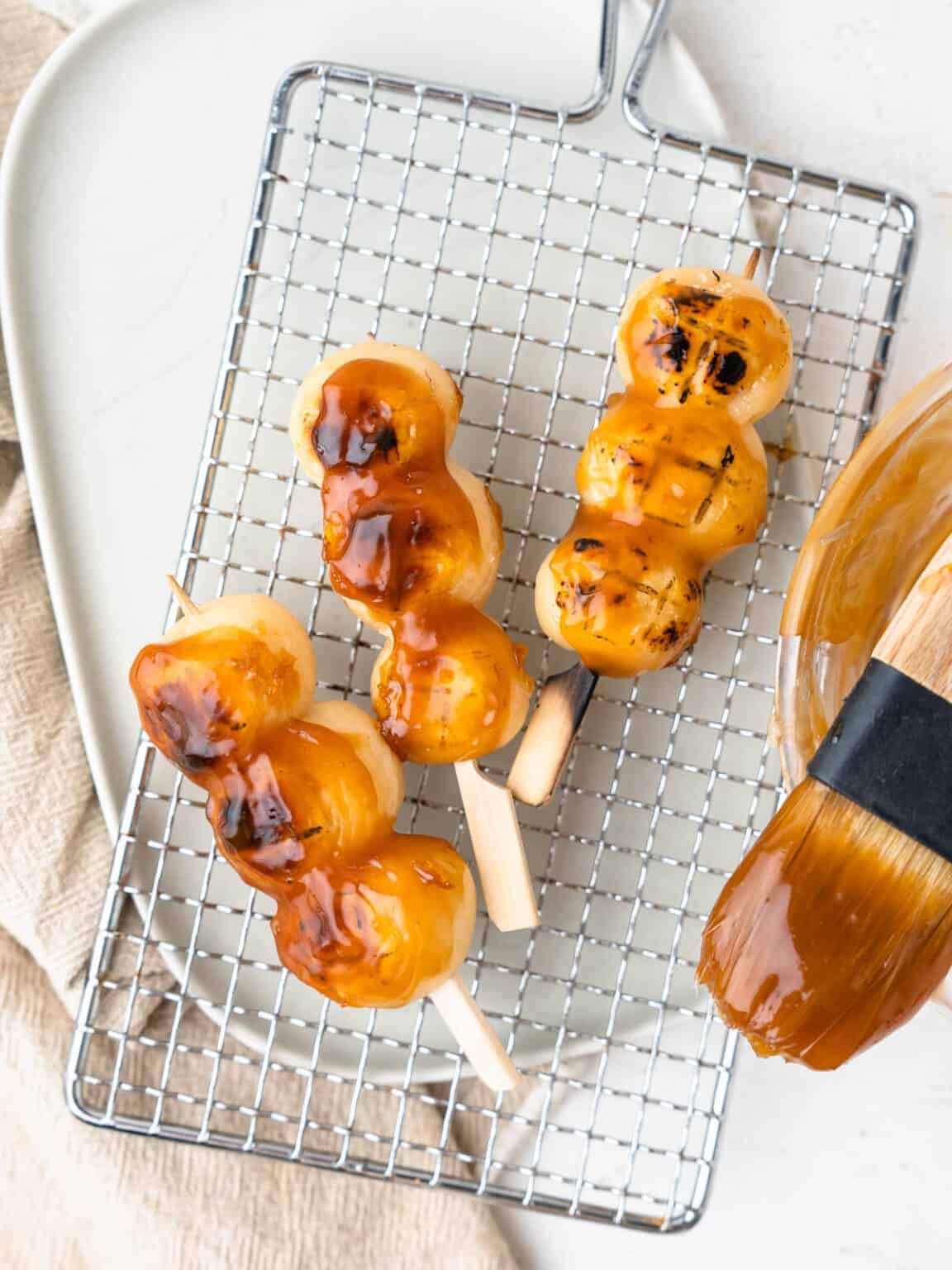 Mitarashi Dango (Japanese Rice Dumplings with Sweet Soy Glaze)