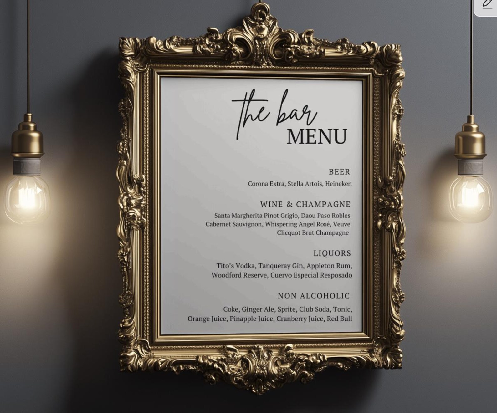 The Bar Menu Sign, Canva Editable Printable Wedding Bar Menu Template ...