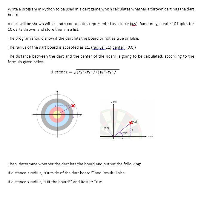 Solved Write a program in Python to be used in a dart game | Chegg.com
