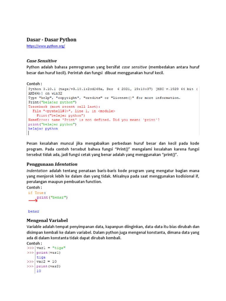 Sintaks Dasar Python | PDF | Seni & Disiplin Bahasa | Komputer